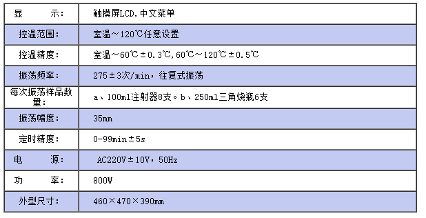 儀器符合GB/T259;GB7598;SD304的標準,用于油中溶解氣體組分含量測定法(氣相色譜法)的振蕩脫氣、油中水溶解性酸測定法(比色法)對樣品的振蕩,也用于其他理化實驗中的恒溫、定時振蕩。儀器采用觸摸屏液晶顯示器,中文菜單,操作更方便直接,采用電熱管加熱,利用先進的模糊加熱方式,升溫快速,控溫準確。儀器具有開蓋停止加熱和停止振蕩功能,并具有溫度校正功能,保證了溫度準確可靠,減輕了實驗人員的勞動強度,提高了工作效率。