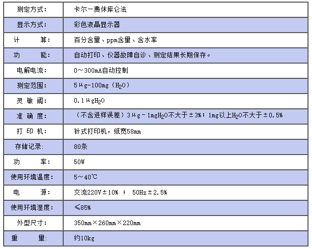 儀器符合GB/T7600及采用卡爾—費休法測定樣品中水分的有關(guān)標(biāo)準(zhǔn),適用于石油化工產(chǎn)品、充油電器設(shè)備絕緣油及礦物原料等物質(zhì)中水分的測定。 該儀器采用了大屏幕彩色液晶顯示,中文菜單,人機(jī)對話更直觀,操作更簡便,具有自動換算自動打印和保存測定結(jié)果等功能,與同類儀器相比,大大提高了測試靈敏度。